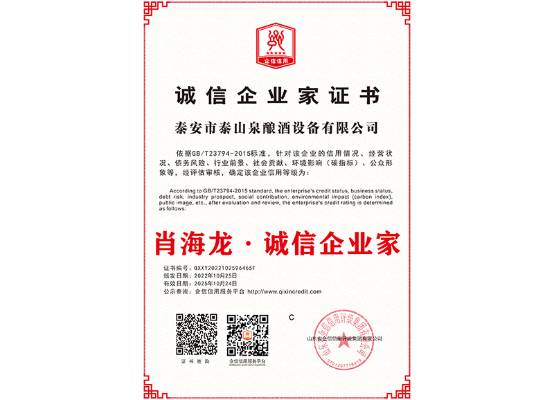 泰安市泰山泉釀酒設(shè)備有限公司,是一家專業(yè)從事釀酒設(shè)備機(jī)械化研發(fā)并集技術(shù)咨詢,工程設(shè)計,制造安裝,人員培訓(xùn)及售后服務(wù)為一體的綜合性企業(yè),本公司主要產(chǎn)品為:大曲清香、小曲清香、大曲醬香、大曲濃香等香型白酒機(jī)械化設(shè)備。 本公司與中國科學(xué)院自動化研究所簽訂技術(shù)服務(wù)合同,引進(jìn)先進(jìn)技術(shù),研究生產(chǎn)全自動化機(jī)械釀酒設(shè)備,由中國科學(xué)自動化研究所的技術(shù)支持,打造最先進(jìn)的生產(chǎn)釀酒設(shè)備,公司有信心打造全國最先進(jìn)白酒...